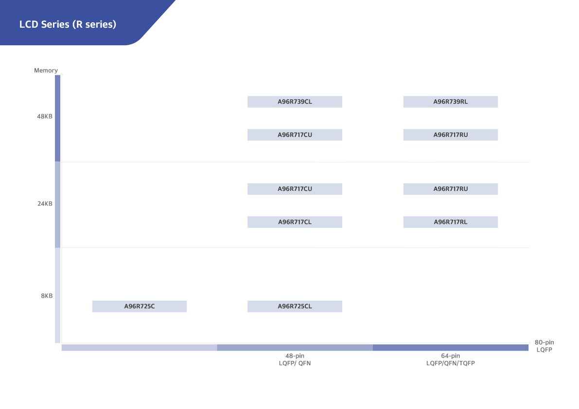 ▶ A96R739 : M8051 / 48KB Flash memory / (LCD) 32SEG x 8COM