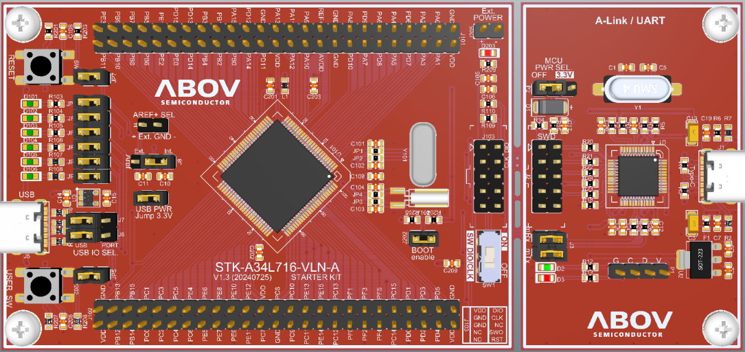 StarterKit_A34M420YLN 支持用户利用 A34M420(64/100/120-LQFP) 系列产品开发各种应用.
