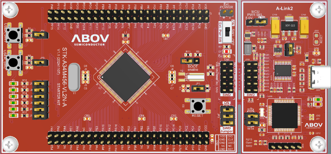 StarterKit_A34M456VLN(100-Pin) 支持用户利用 A34M456(64/100-LQFP) 系列产品开发各种应用.