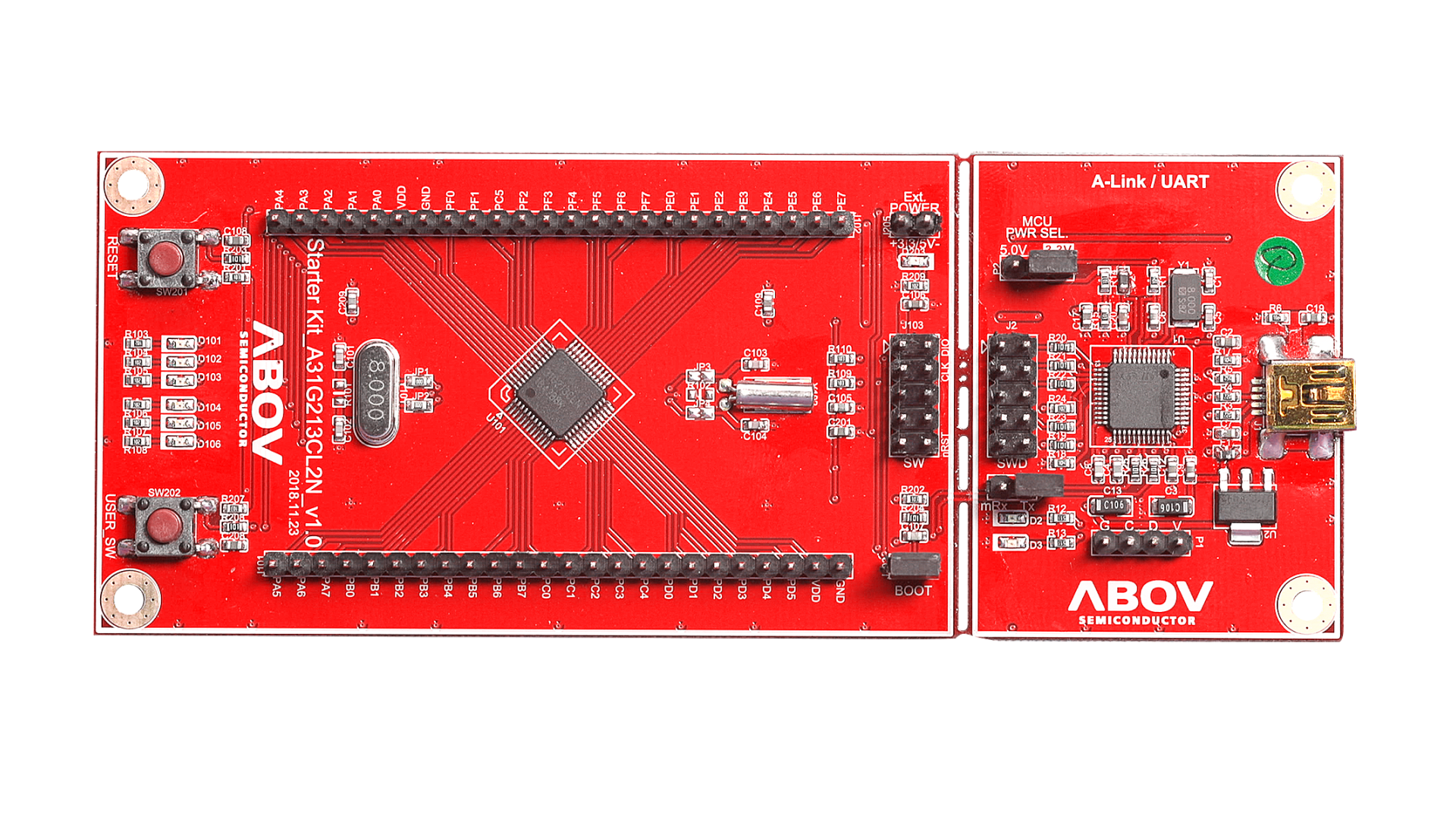 StarterKit-A31L222FRN 支持用户利用 A31L22x (A31L222, A31L221) 系列产品开发各种应用.
