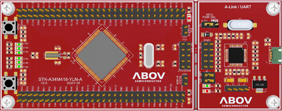 基于A34M420 MCU,包含了 LED, 按钮, 内置调试用的 A-Link 接口及 USB 接口. |
