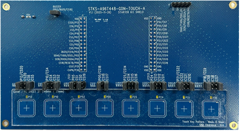 Starter Kit Shield Board_A96T448GDN 是用户连接 A96T448 Starter Kit 使用的扩展板 . 将触控相关函数做成库文件,提供容易上手的UI. 基于 A96T448 MCU 的 Shield Board,包含了 Touch key, LED Driver, Buzzer,可连接扩展板使用.