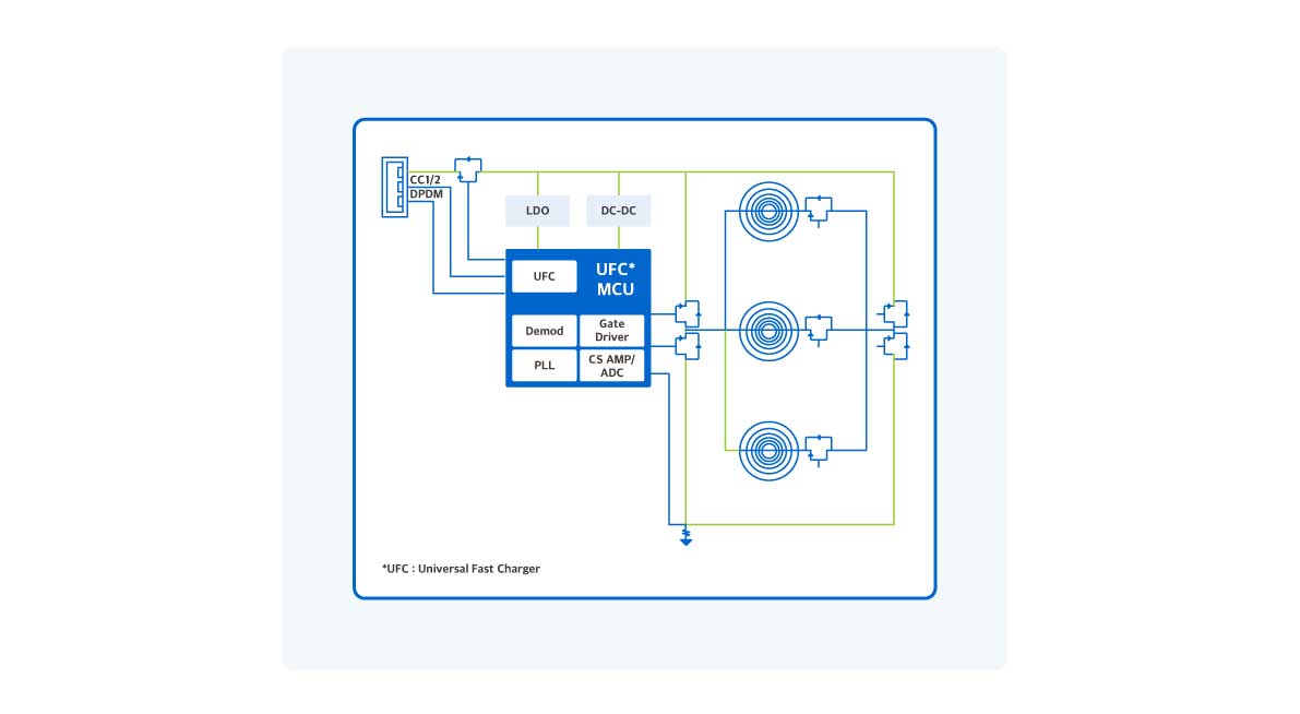 ABOVは、ワイヤレス充電用のユニバーサル高速充電器(UFC)MCUを提供しています。UFC MCUは、最新のUSB PD 3.0とレガシー方式の高速充電をサポートするMCUです。