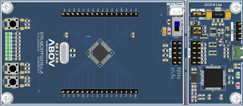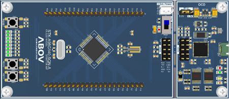 This Starter Kit is based on MC96F6432P MCU, and includes LED, Push Button, built-in E-OCD II interface for debugging and USB connector. |