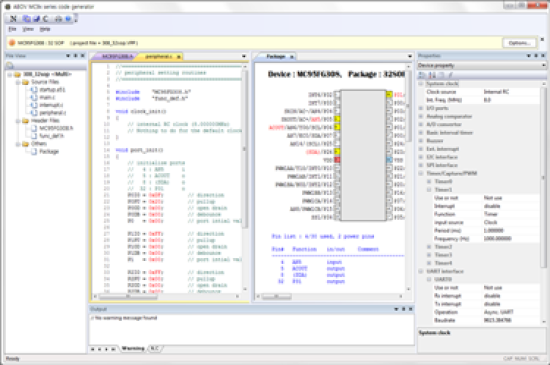 사용자가 C 기반 기본 소스 코드 프로젝트를 생성하도록 돕고 내부 주변 장치 및 포트 제어를 설정하기위한 쉽고 편리한 사용자 인터페이스를 제공합니다.